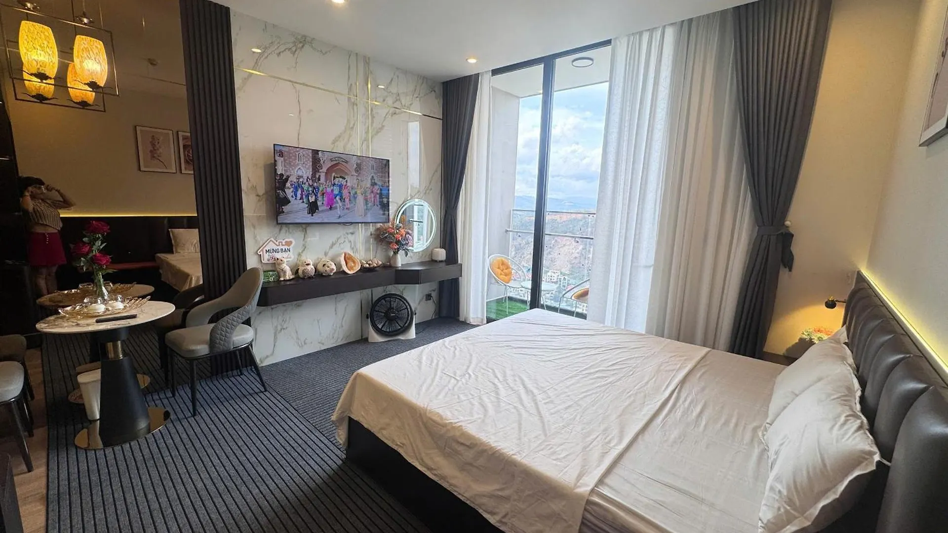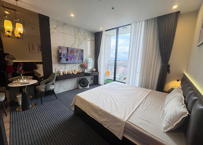 The 33 ft² Ha Long Icon40 Marina Apartment is located about a 10-minute drive from Ocean Park and 3.2 miles from the fantasy Sun World Halong Complex Amusement Park. Also, there is a private swimming pool to ensure a more enjoyable stay.